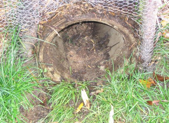 Bei diesem Beispiel wurde die Falle komplett mit Mist eingegraben.