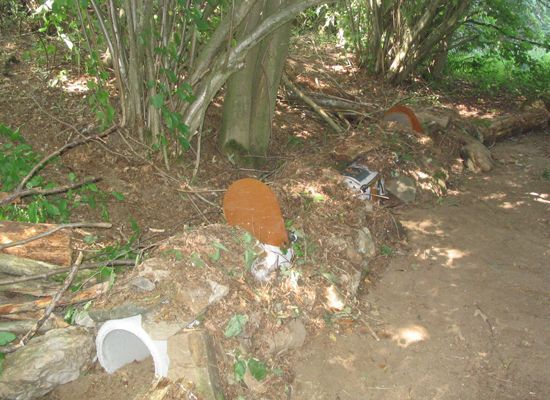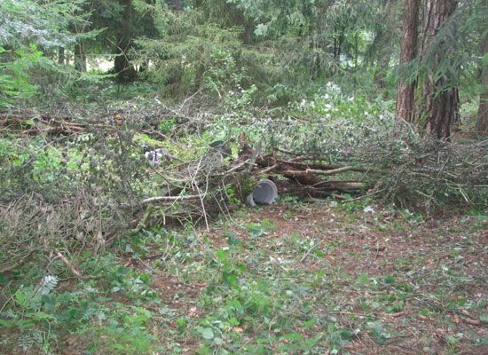 Alles was sich in der Nähe des Standortes befand wurde zum Verblenden der Falle verwendet. Hier war es bspw. vermooster Bauschutt.